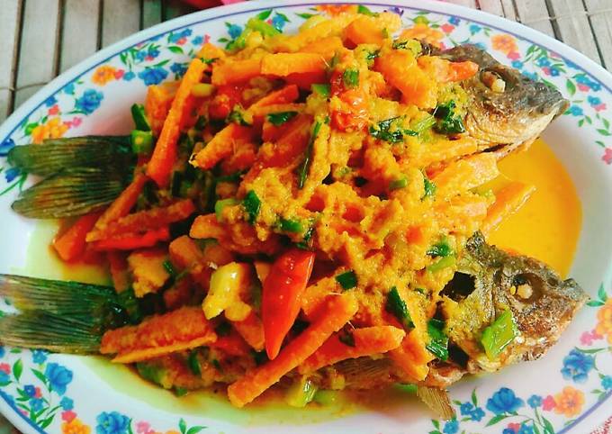 Ikan gurame pesmol siap disajikan. Langsung lah liat kulkas adanya wortel dan daun bawang. Dibutuhkan of Bumbu Halus.