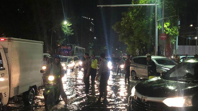 Hujan deras disertai petir di Kota Surabaya pada Jumat 3112020 sore menyebabkan sejumlah lokasi banjir.